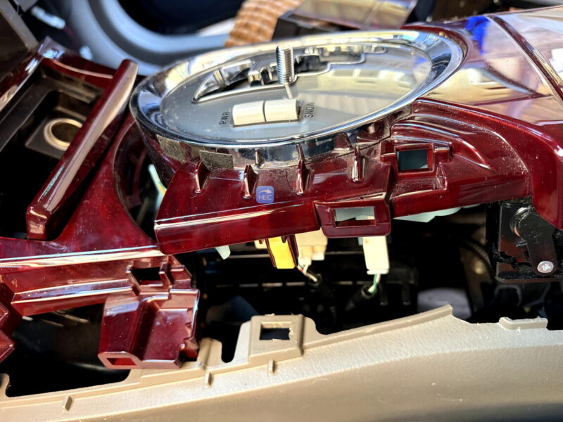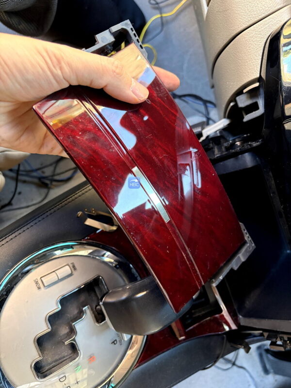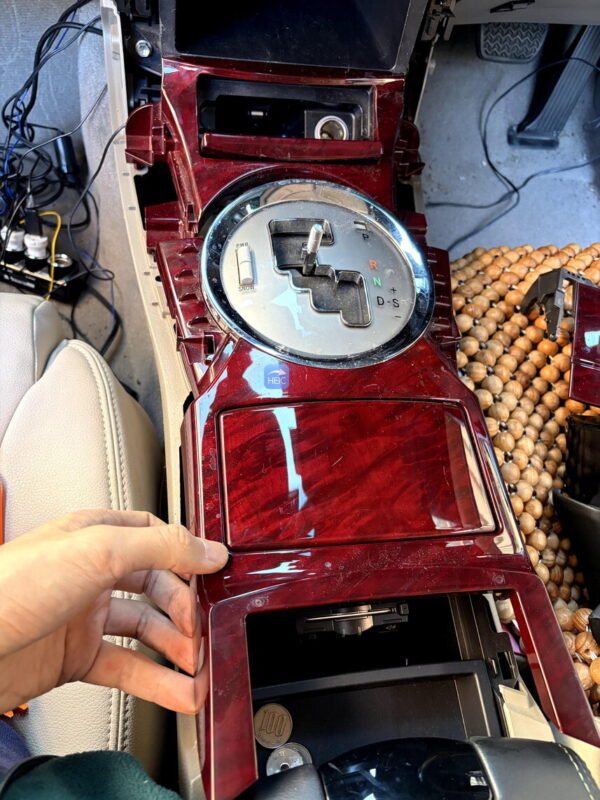 この作業が一番面倒。ナビ下のねじを出すには、小物入れを取り外したあと、シフトレバーも外して、フロント部分のカバーを一気に外す必要がある。