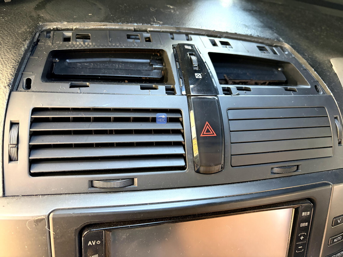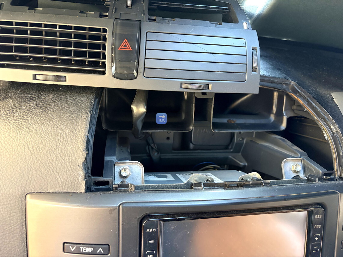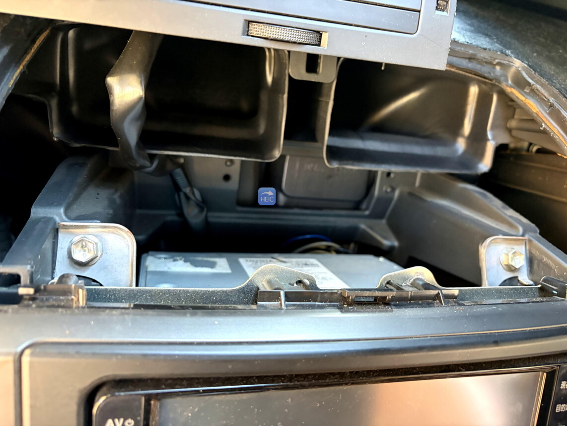 フロントエアコンを取り外す必要がある。通気口の部分が割れやすいので慎重に外す必要あり。