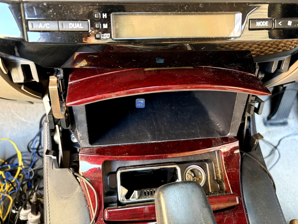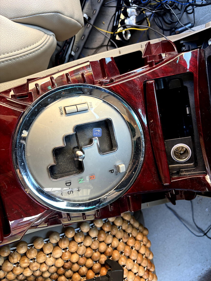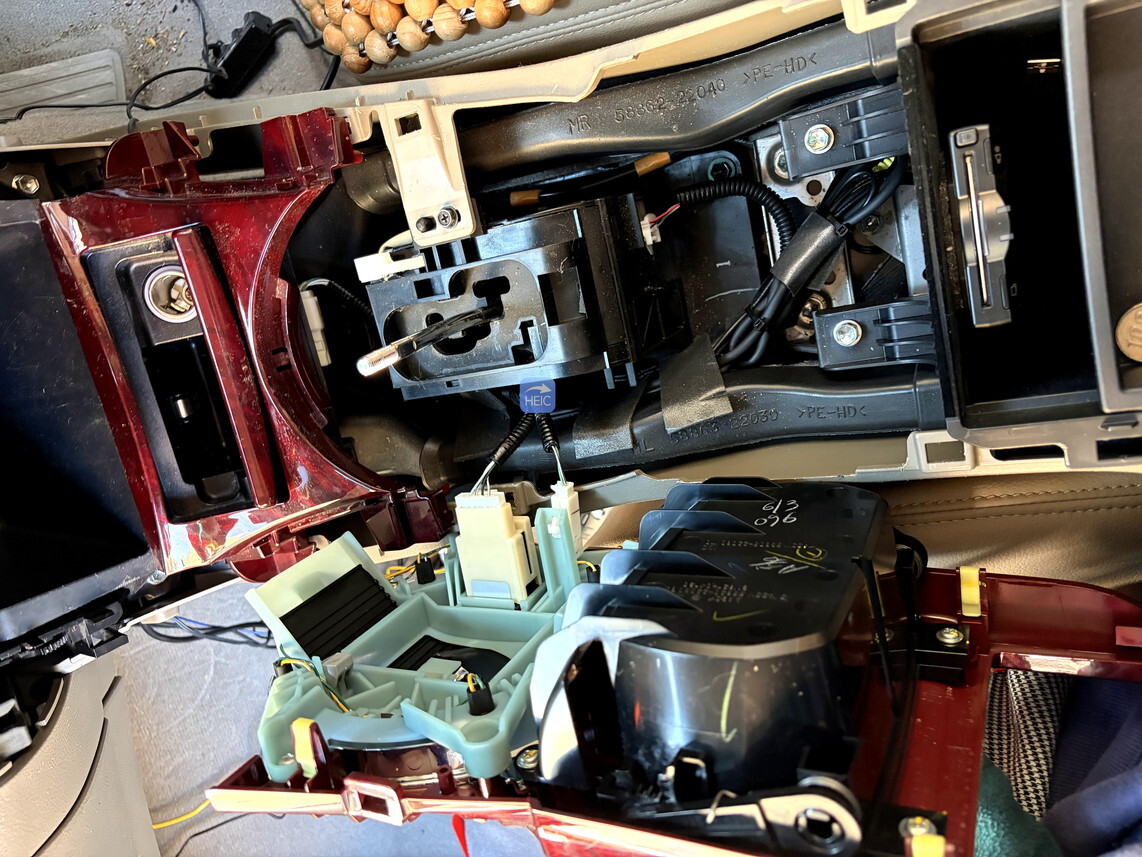 この作業が一番面倒。ナビ下のねじを出すには、小物入れを取り外したあと、シフトレバーも外して、フロント部分のカバーを一気に外す必要がある。