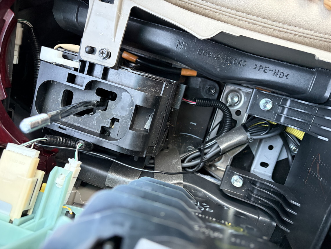 ナビ裏のボディアースに付けるのは同じことが起きたらメンテが面倒すぎるので、シフトレバー下に変更した。