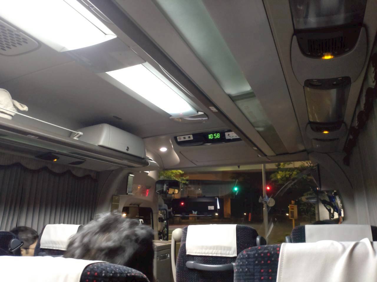 夜行バスは時間節約できるのでおすすめだが、4列シートで、体バキバキになって熟睡はほぼ不可能。工程によっては前泊をすすめたい。