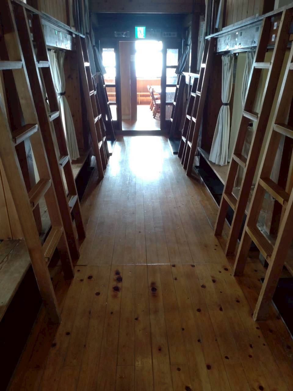 部屋は2段になっていて、宿泊客ごとに敷居とカーテンでプライベートが確保できるようになっている。乾燥室や水場もしっかりしていてよい山小屋だった。トイレも綺麗。