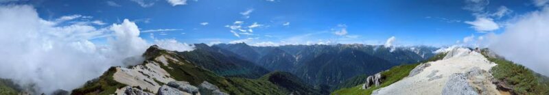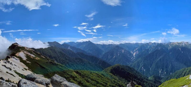 表銀座はめちゃくちゃ良かった。槍ヶ岳を含め北アルプスの雄大な山々を見ながら稜線をあるけるのは最高。