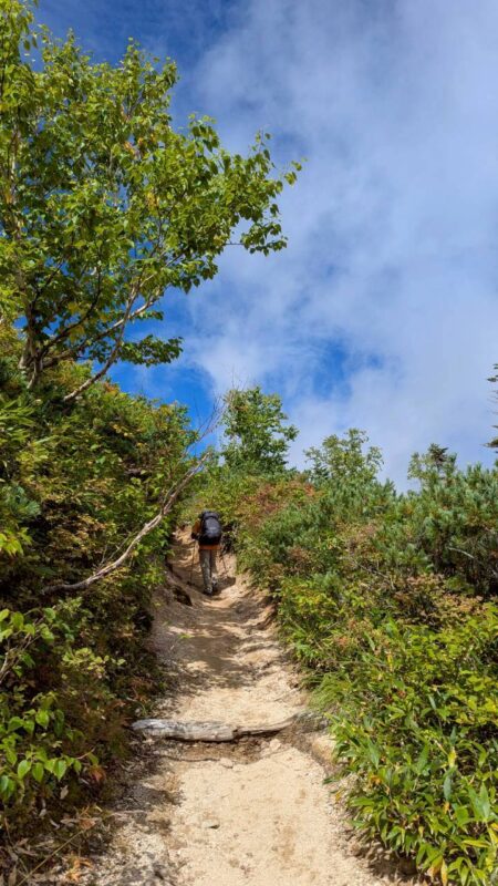 合戦小屋を超えると森林限界?なのか背の高い木々がなくなり、開けた場所が増えてくる。